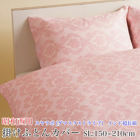 掛けふとんカバー 国産 SUYA-LAB(スヤラボ) ダマスクストライプ ダブルロング 190×210cm 綿100% インド超長綿 サテン生地 昭和西川 nishikawa 布団カバー ふとんカバー 掛け布団カバー ダブルロングサイズ ピンク ブルー ベージュ 日本製 [送料無料]